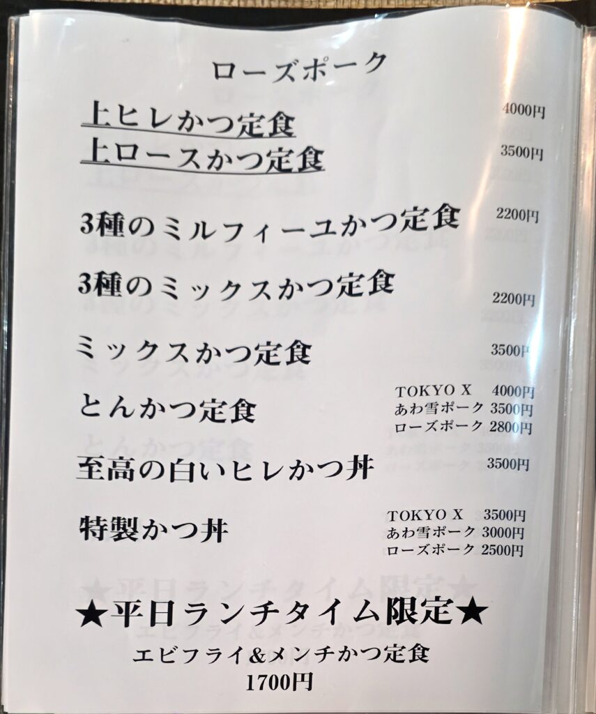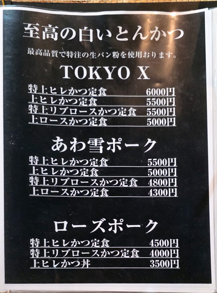 ローズポークのとんかつ定食が一番安くて2800円、TOKYO Xの特上ヒレかつは6000円なんていうんだから、前回食べた2300円からはさらに高級に。