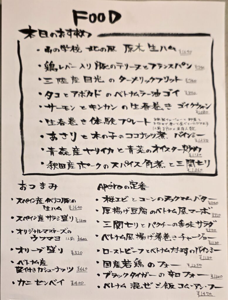 できたばかりだったのでこのときはまだエスニックも少なくバル的メニューでしたが