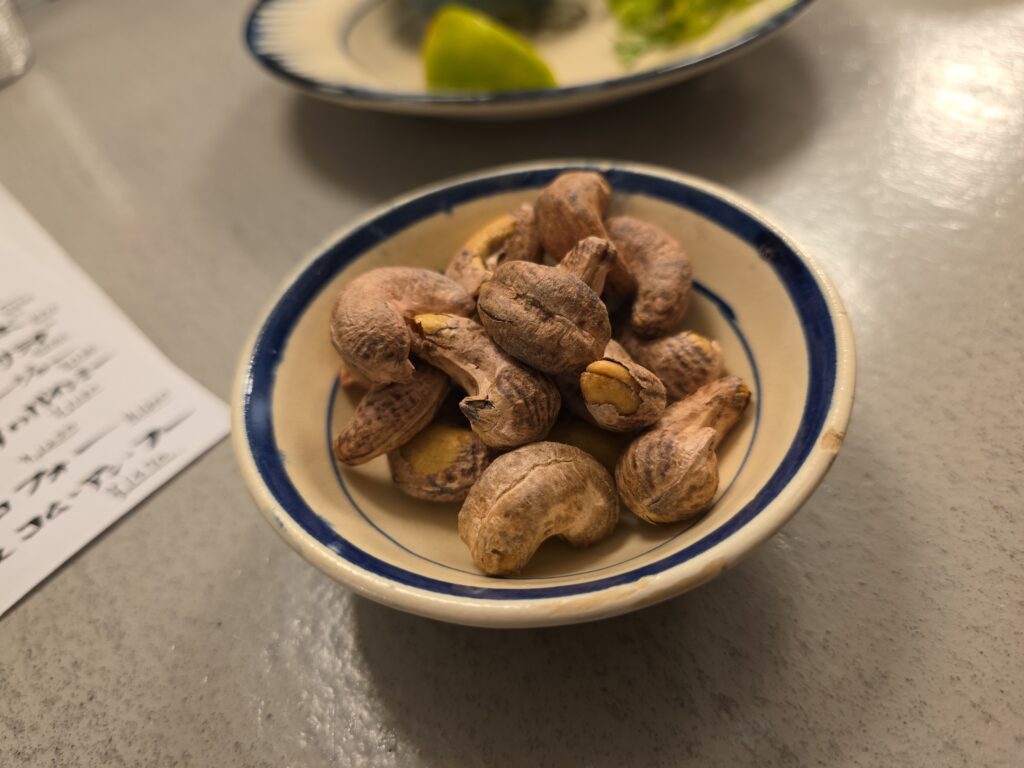 ちょっとしたつまみに殻つきカシューナッツがいい。殻ごと食べられるんだって。