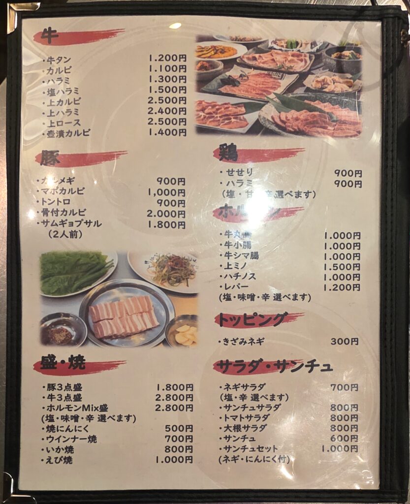 【上カルビ】¥2500、【牛タン】¥1200、【ハラミ】¥1300