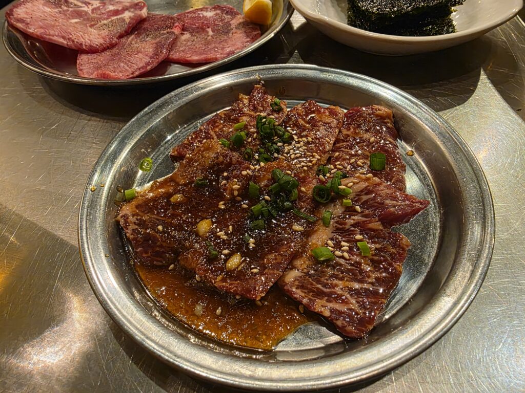 やっぱこれだね。普通のカルビと全然違う脂。ちょっと味付けは濃いめかな。ニンニクたっぷりなのでそのままでもいけるくらい。