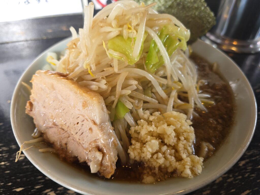 コンビニで食べた二郎系が物足りずやっぱりここに来たくなる。三田本店では3時間半並んだけど、それ考えたらやっぱりマシンガンだな。