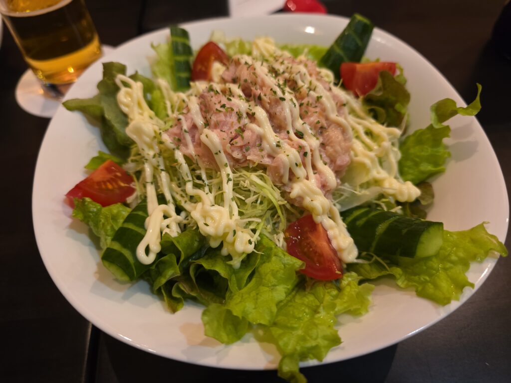 健康面も考えてツナサラダを頼みまして・・・これってヘルシーなんかな。