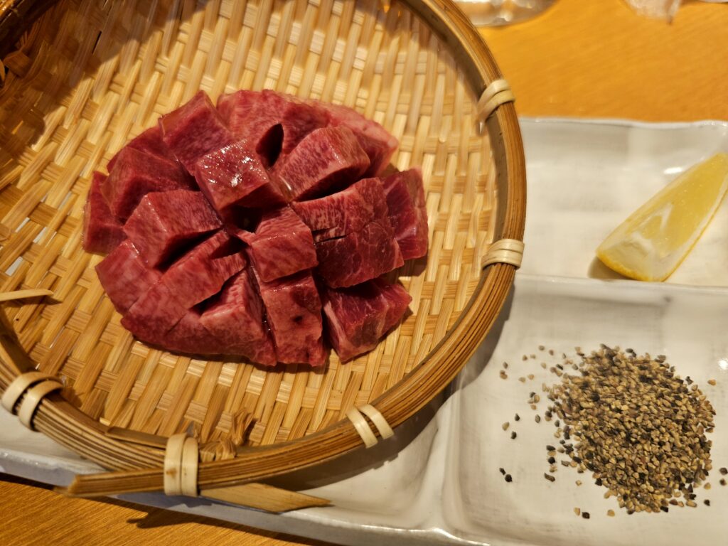 忘れちゃいけない牛タンはダイヤモンドカットです。網にのせると、どうカットしていいかよくわかりませんが、美しい見た目。