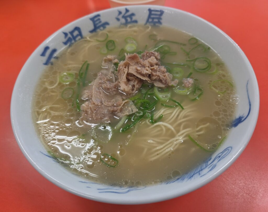 長浜家もあるがこちらは屋。スープは薄いので追いタレで味を出す。券売機で買ってから並ぶ。替え玉券も買う人が多いが現金でもいけるし、その後のことも考えて替え玉はしなかった。14時過ぎでも20人くらい並んでいたが、まぁ15分くらいの待ち時間。店内は外国人が並び、麺の硬さを聞かれる。