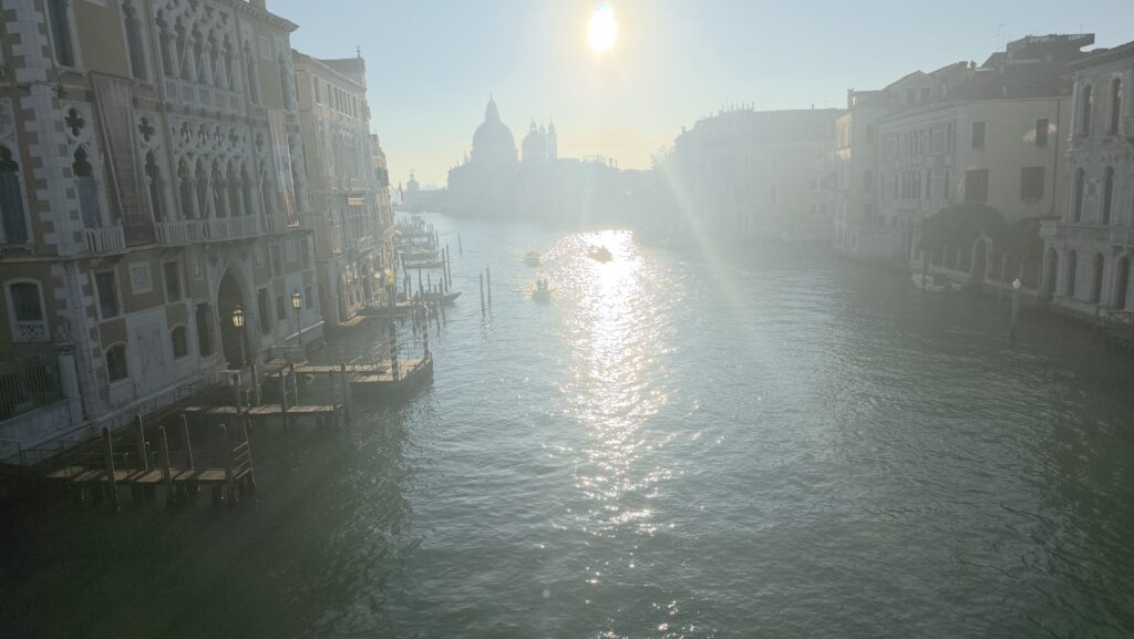 アカデミア橋からの眺めもよいと、後で聞いたがこの時は朝日がまぶしくてあんまり見えなかったんだな。
