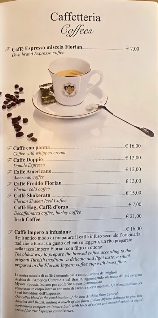 【カフェ フローリアン】Caffè Florian ヨーロッパ最古のカフェでエスプレッソ