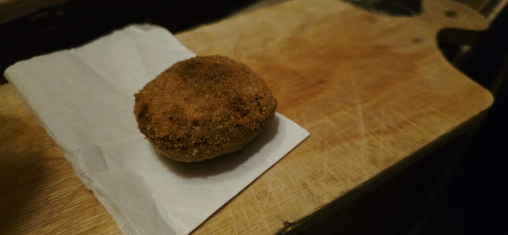 軽いつまみにPOLPETIE、コロッケかな、これも旨い。