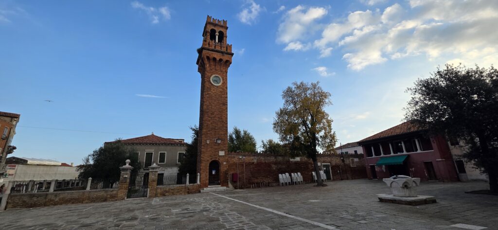 運河沿いに立ち並ぶ建物はブラーノのようにカラフルではなくオレンジ調。クロックタワーまで歩き、教会も外観を眺める程度で、灯台目指して戻る。