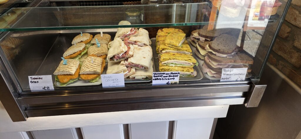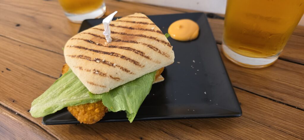 開店間際だったからかチケッティはあまりなかったのでフィッシュフライのサンドをいただく。