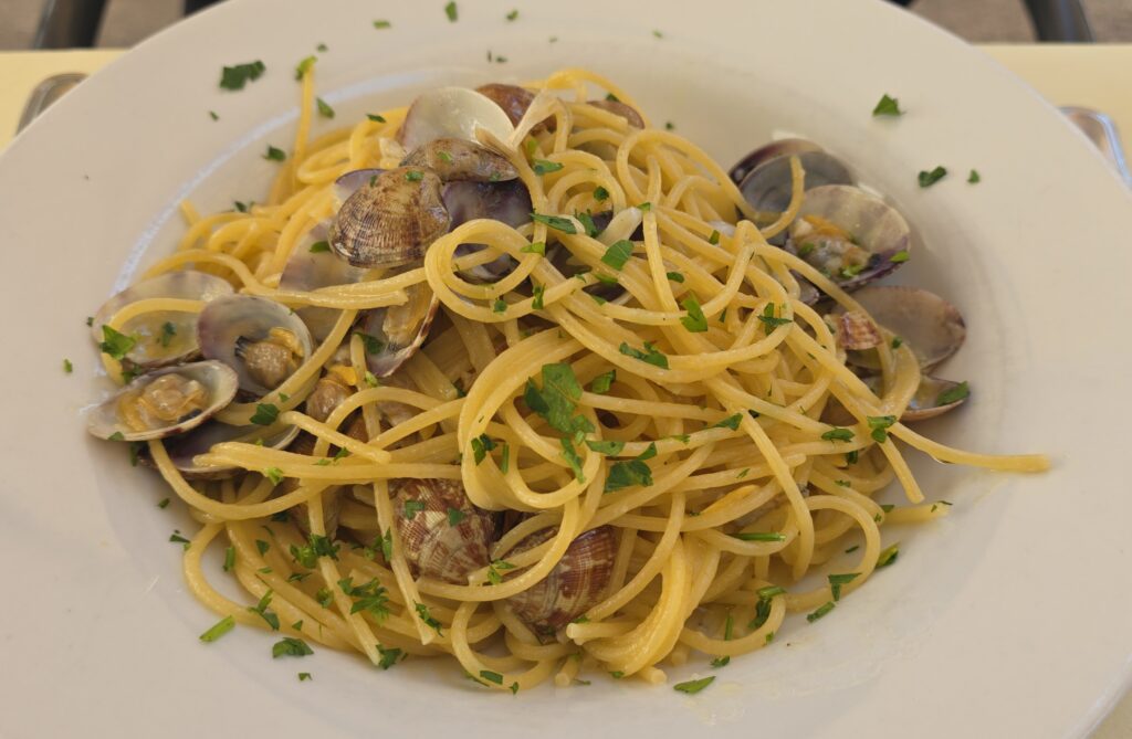 イタリアでパスタを食べるのはほぼ初めてだったが、アルデンテというよりはややモッサリ感があるかな。ボンゴレはニンニクが効いていて美味しくいただく。