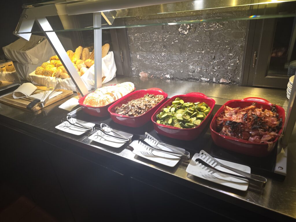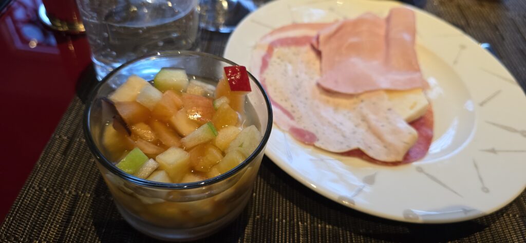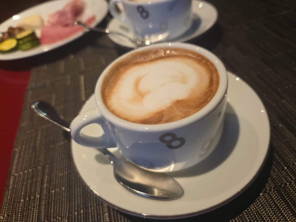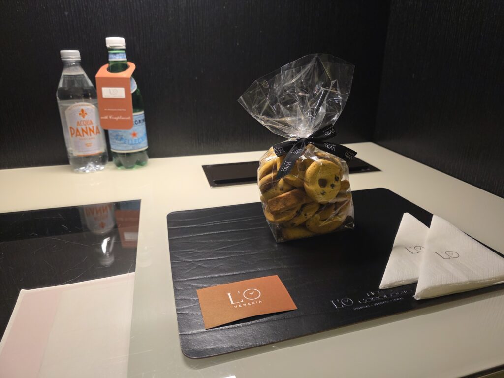 リアルト橋までのアクセスもよく、拠点としては申し分ない。ウェルカムクッキーはお腹が減ったときにちょこちょこ食べて、水や炭酸水も毎日あってありがたかった。朝食のカプチーノが美味しくてさらに朝からスパークリングも飲める。