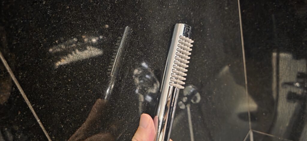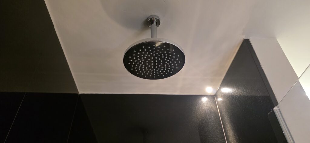 シャワーは上から出るタイプ。使い慣れないんだよな。
