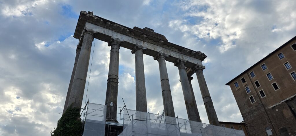 奴隷や貧民階級に敬われた農耕の神サトゥルヌスを祀る場所。8本の柱が残存。