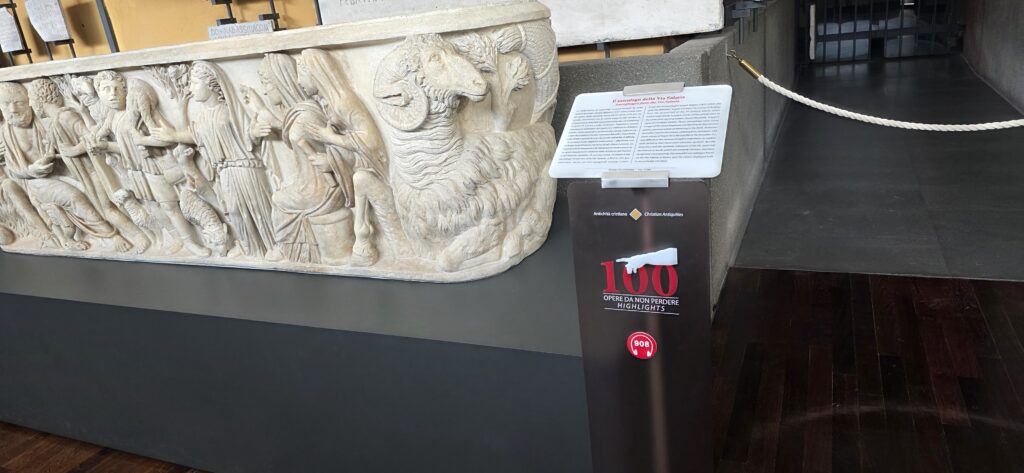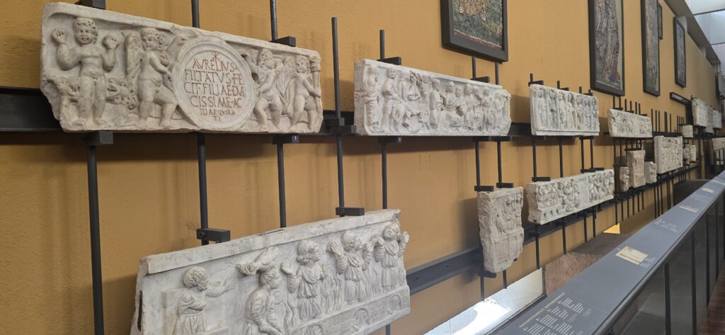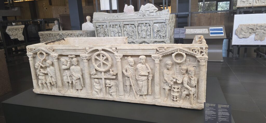 初期キリスト教美術が中心で宮殿の彫像、モザイクが主。ピナコテカを見学してからすぐにもアクセスしやすい。白色の石で造られた棺か、外側にはどれも細かな彫刻がされ、それが数多く並ぶ。