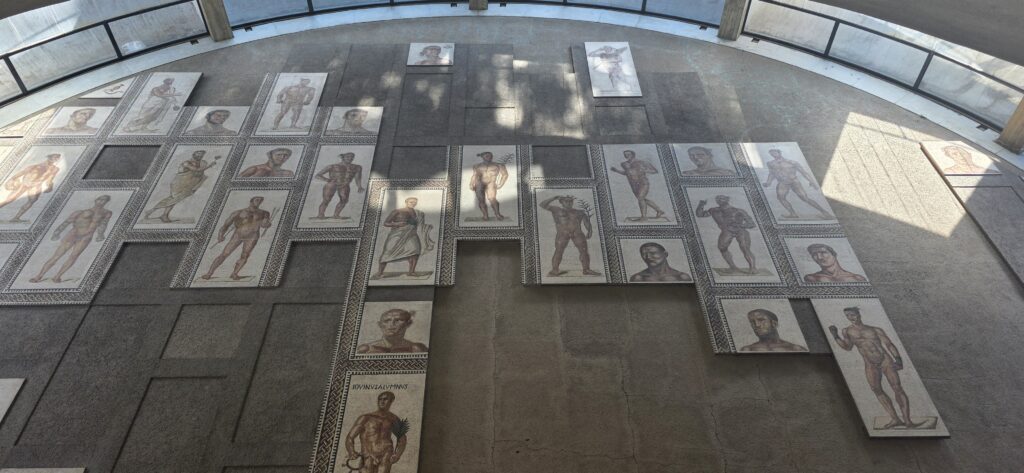 モザイクも見て回るが、下の階には多くの彫像があり、しっかり形が残るものもあるが、顔や1部が欠けたものも多い。