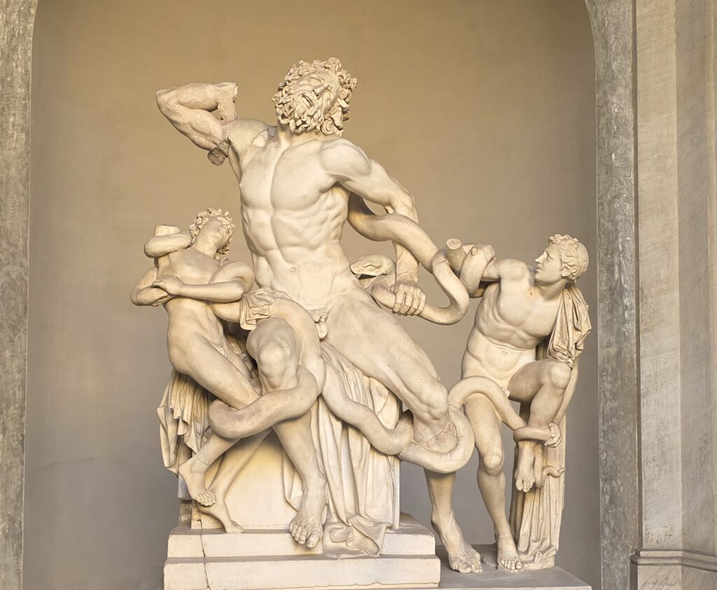 八角形の中庭からラオコーン、アルノ川の神の彫刻があり見逃せない。
