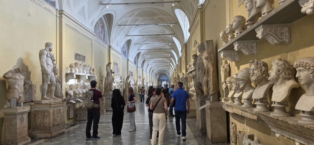 階段を下ると長い廊下に何百もの大理石の像が並ぶ。胸像から、ギリシャ神話に登場するものまで様々なものが並ぶ。