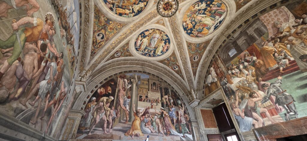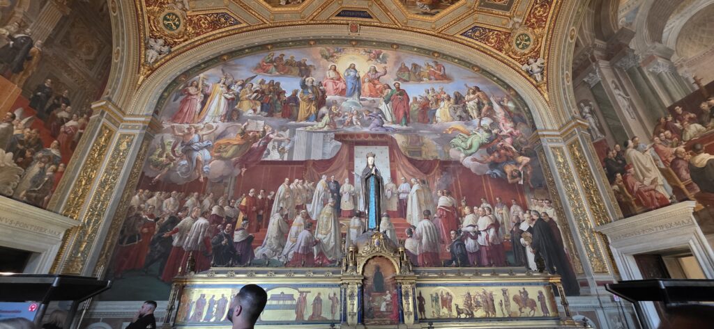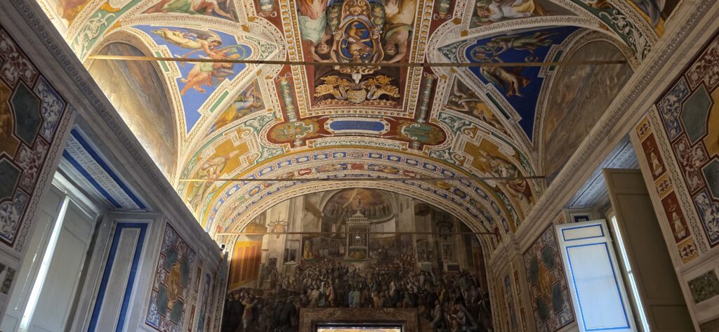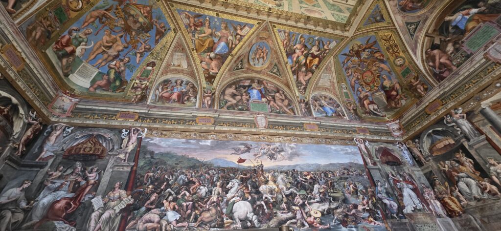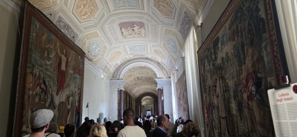 ラファエロと弟子たちの下絵によるタペストリーがあるが、ここら辺からはシスティーナ礼拝堂まで一本道でありめちゃくちゃ混んでいてゆったり眺めることはできない。