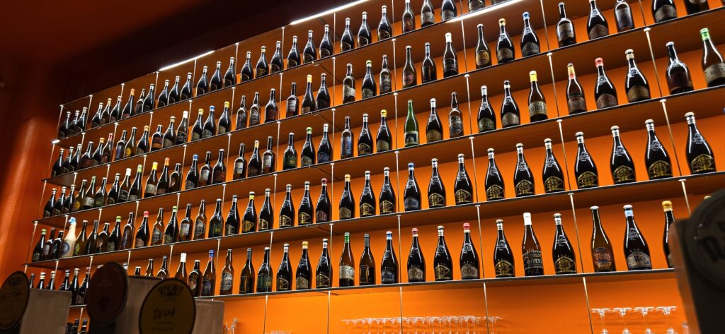 カウンターの壁1面を埋め尽くすボトルの数々は普通のバーかと思ったが、立ち並ぶのはtapの数々と、黒板にはジャンル毎にセレクトされたビール。人気のようで店内は賑わい、予約なしだがカウンターなら座れた。