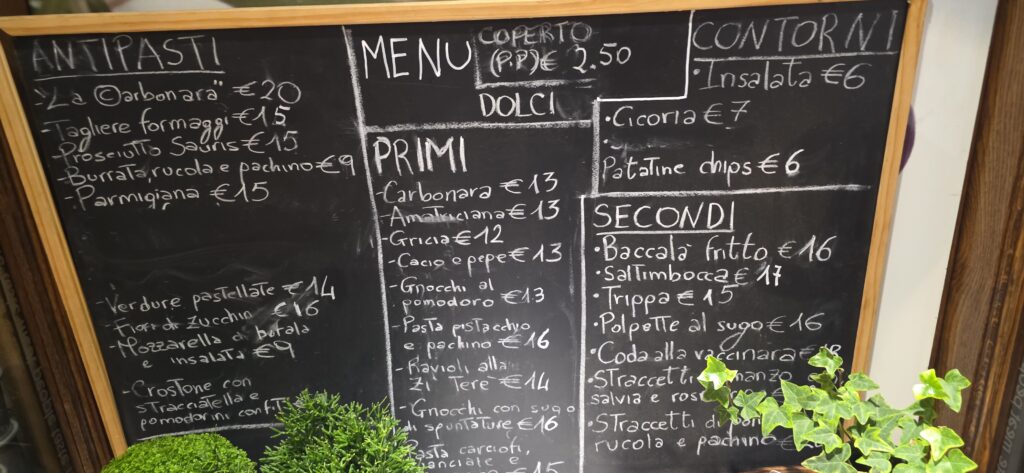 カルボナーラ発祥の店であり行きたかった店。ディナーで行ったが店内で何組か待つが比較的スムーズに入れた。