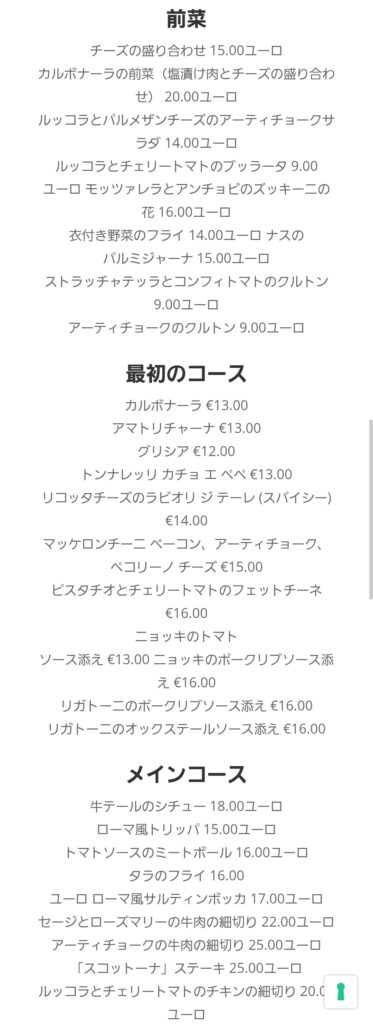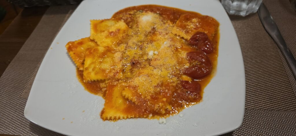 パスタはもちろんカルボナーラとラビオリも頼み、メインも頼みたいところだが後にしてと言われ、結局頼まずに帰った。