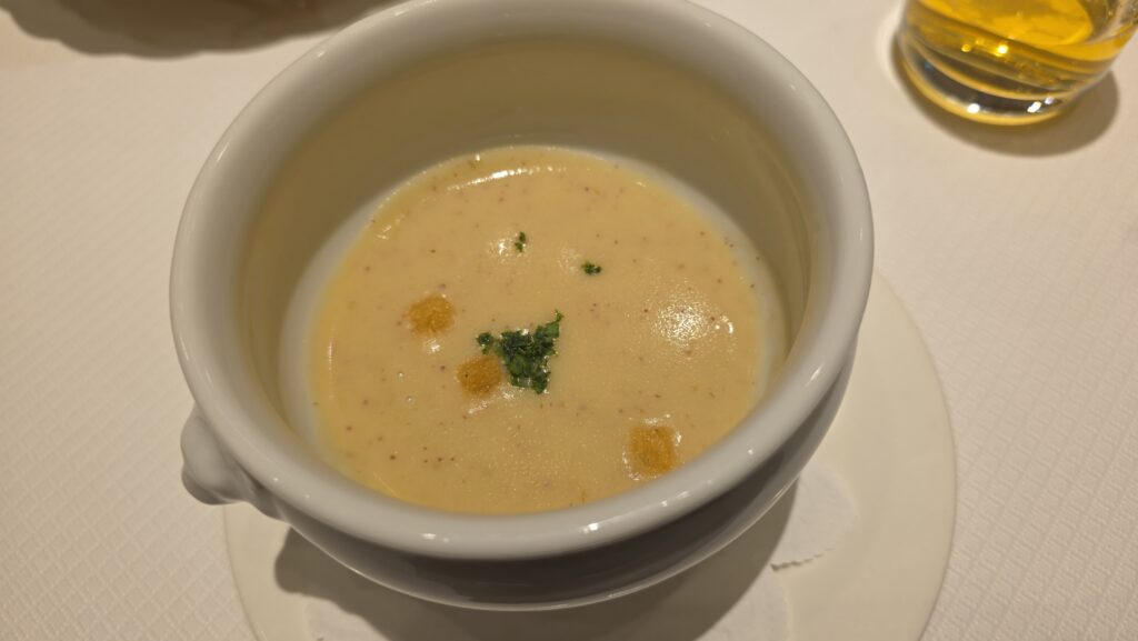 というわけでスープをいただくのも久しぶり。しかもさつまいもとリンゴってちょっと珍しいな。