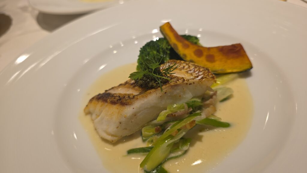【男鹿鯛のポワレ】白神ねぎと白ワインソース