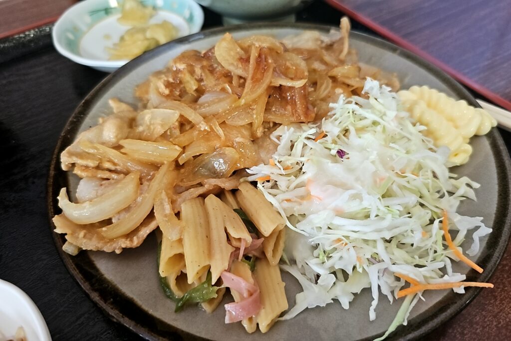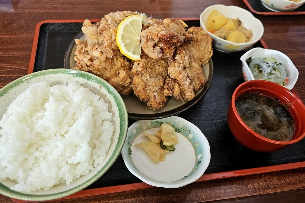 牛バラを頼もうと思ったらしいが売り切れでしょうが焼きにしていた。ご飯は大盛り。唐揚げ2個食べきる前を食べ終わっている。唐揚げ以外はそうでもないのかと思えば、他のお客さんがたくさん頼んでいるエビフライがまた凄い。