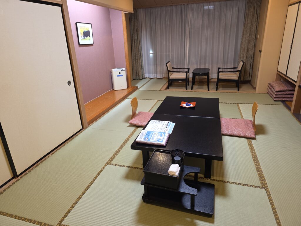 やっぱり温泉宿といえば和室だな~。でも布団が敷いてないのでついてすぐくつろぐことができないからな。