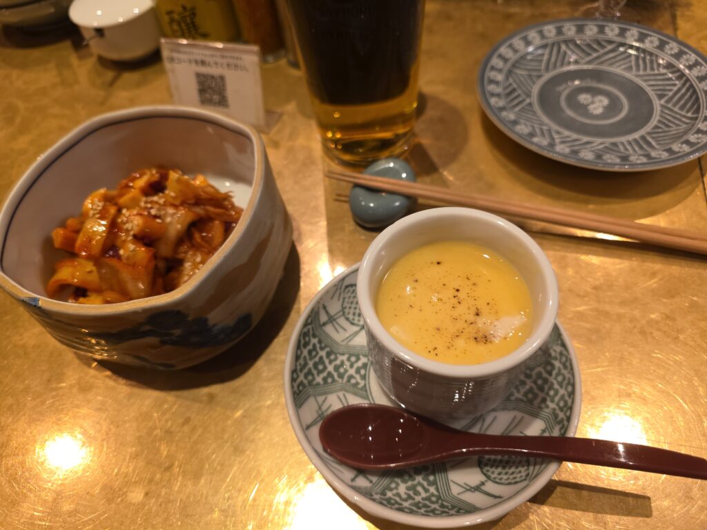お通しは茶碗蒸しみたいですが、湯葉が入っててこれがまた旨い。