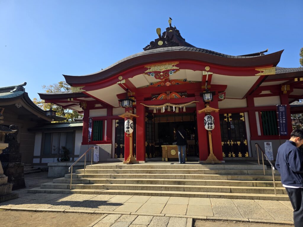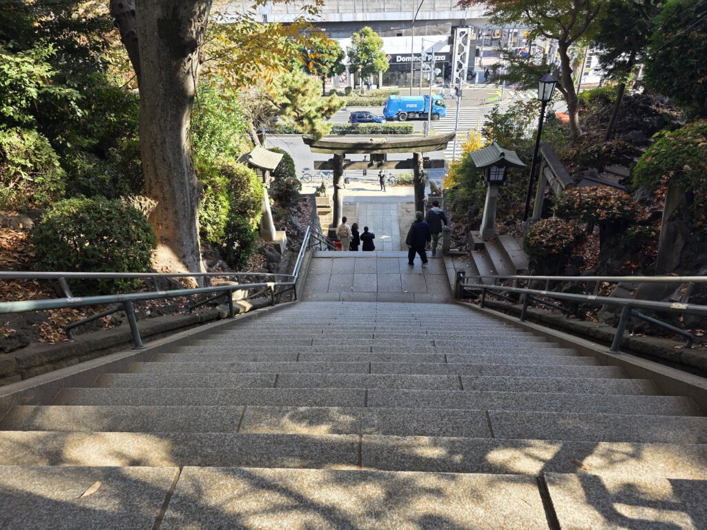 色鮮やかな神社だが、入り口の階段はかなり急。