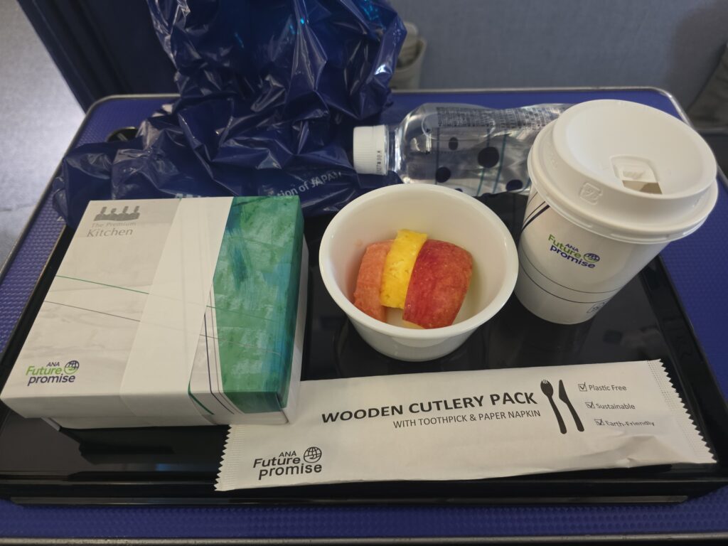 気流が不安定のためと朝食を渡されましたが、離陸前に渡されて膝の上で持っててくださいというのも怒るのもわかります。下には荷物を置かないでくださいと言われるし。