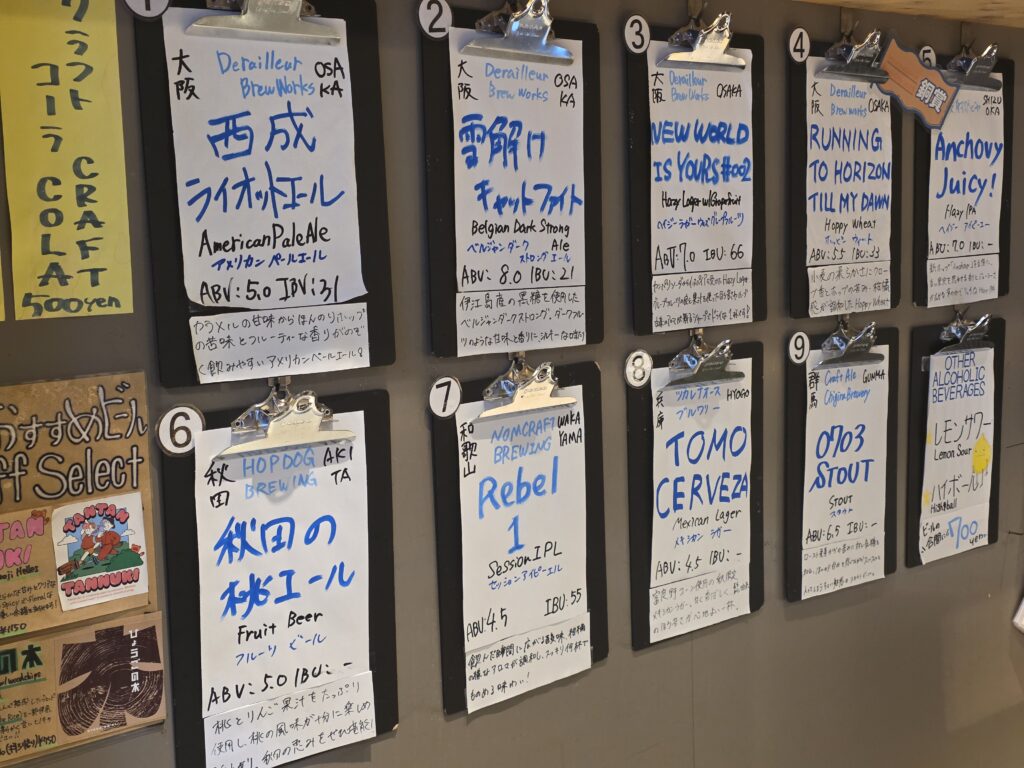 9tapの国内ビールがつながり、自社製造、西成のDerailleur BrewWorksが四種類つながってた。