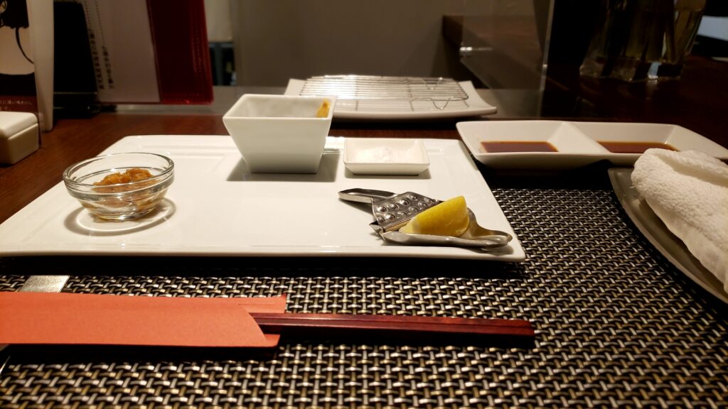 ソース、ポン酢、塩、柚子醤油のイロイロな味を楽しめますが、やっぱりワタシはソースが好き。軽い衣に中はジューシー。一本一本丁寧に味わうならやっぱりカウンターが好き。