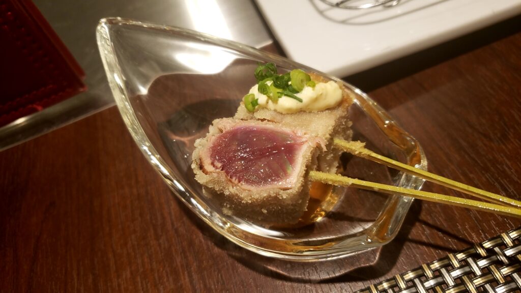 変わり串は、戻り鰹。内側がレア、この感じがたまりません。