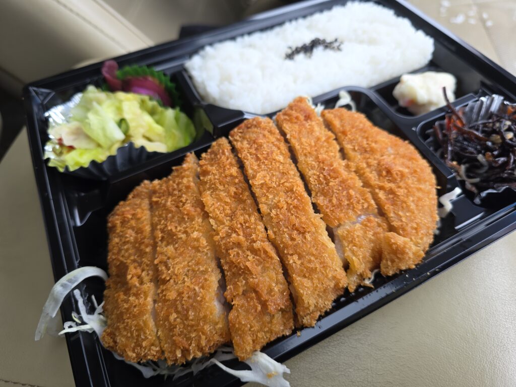 入ってみるとお惣菜みたいなのも並んでますが、レジで注文。椅子で待って、受け取って車でそのまま食べる。会計もしましたが10分以内。