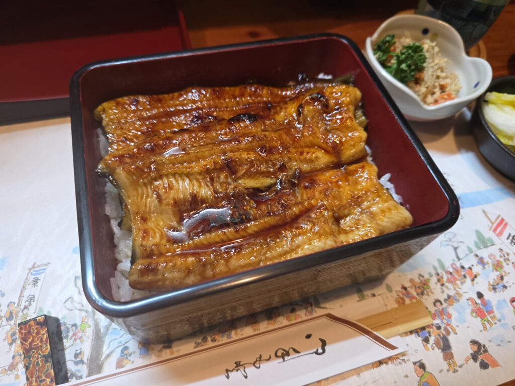 久しぶりに店で食べる鰻、重に重なる鰻が2枚、これは米が足りないやつだ。存分に鰻を味わう。身も厚くて、高いと思ったけどこのボリュームならむしろリーズナブルですね。