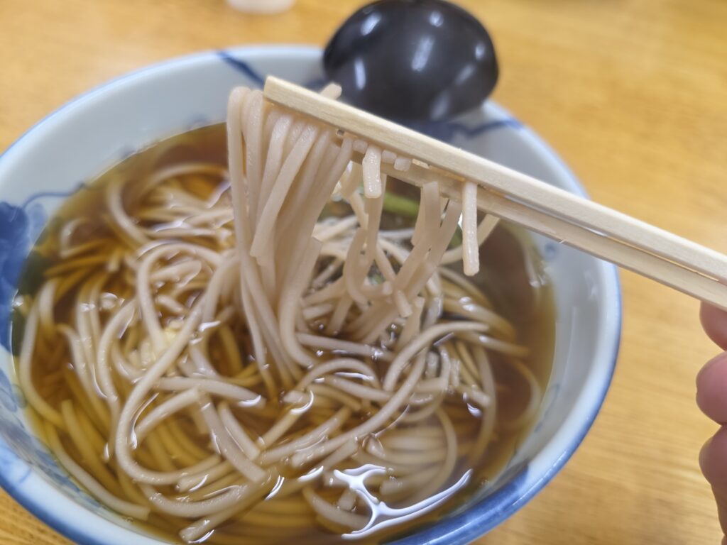 蕎麦をすくってみると、すくえない。それほどまでに柔らかいというよりはボソボソと切れていく麺、これがまた案外いい。二日酔いには染みる蕎麦とツユ。