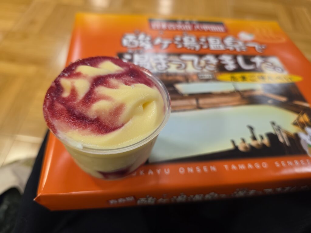 売店では生姜味噌おでん、蕎麦まんじゅうもあるんだったかな。ソフトクリームも売ってたけど、売店にあったアイスが旨そうで。