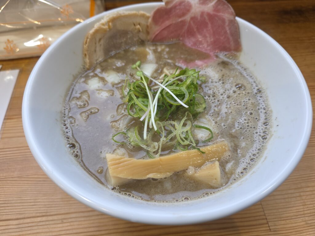 朝から濃厚いってしまったが、セメント系よりはまだサラサラ。もちろんガッツリの煮干し。背脂も入る。