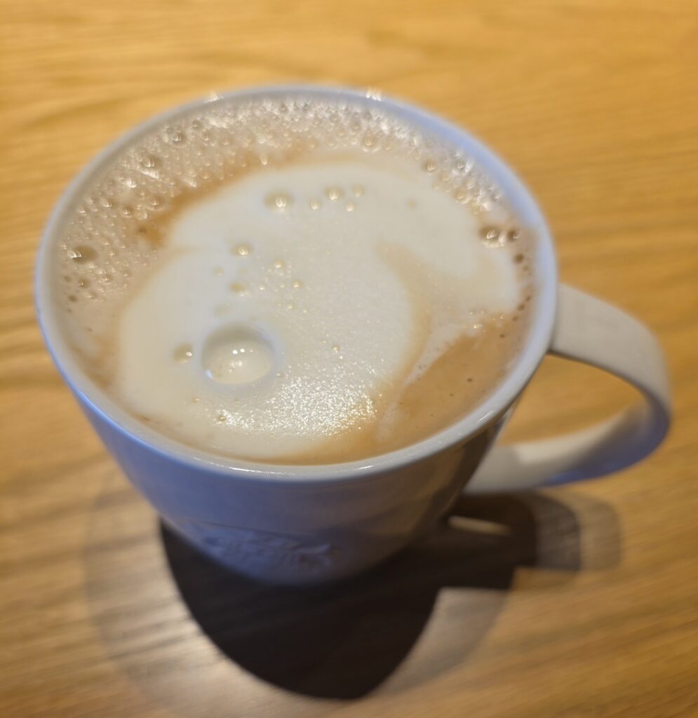 ただの珈琲ではカフェインが多すぎる。ラテだとお腹を下す。そんな身体になってから、セロトニンが生まれることを信じて、豆乳ラテ。