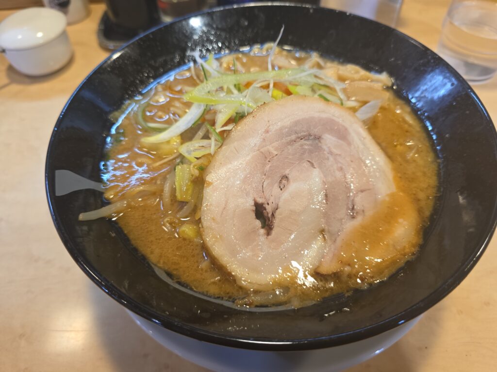 元氣屋グループってのはなんとなく知ってたので安定の味噌ラーメンではありますが、麺は味噌にしては若干細め、やわやわ。これは柔らかいなぁ、硬めできるのかなぁ。