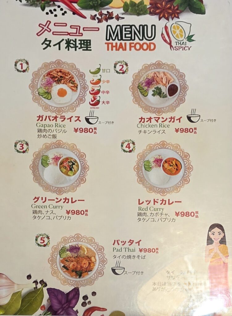 その名もタイスパイシー、これはきっとタイ料理だろうな。