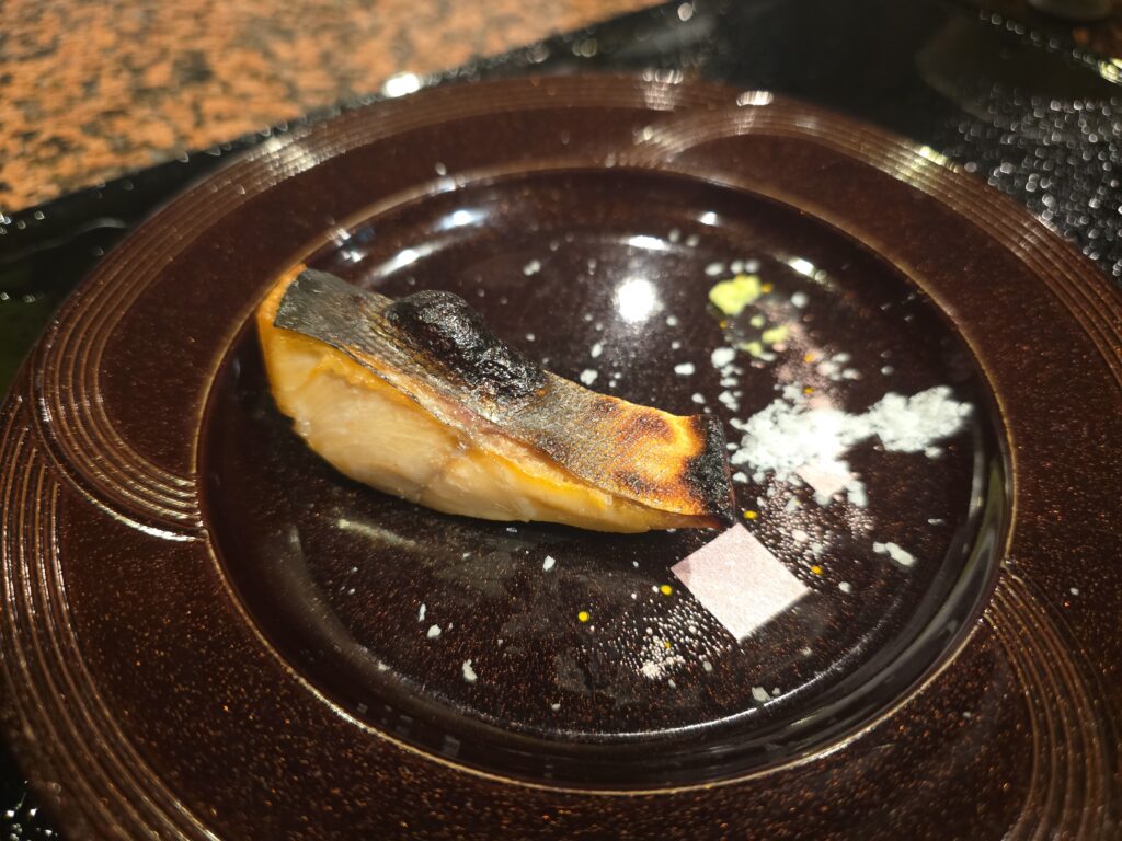 山形正宗から始まり、サクラマスの焼き魚もいただく。