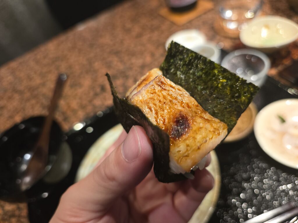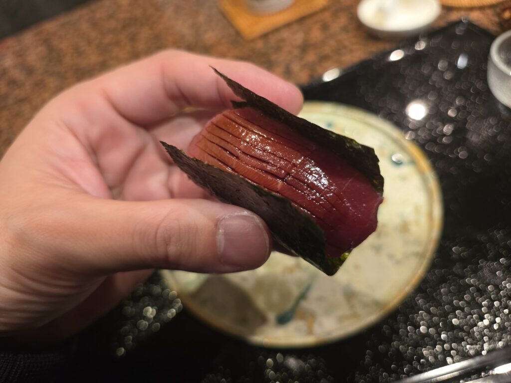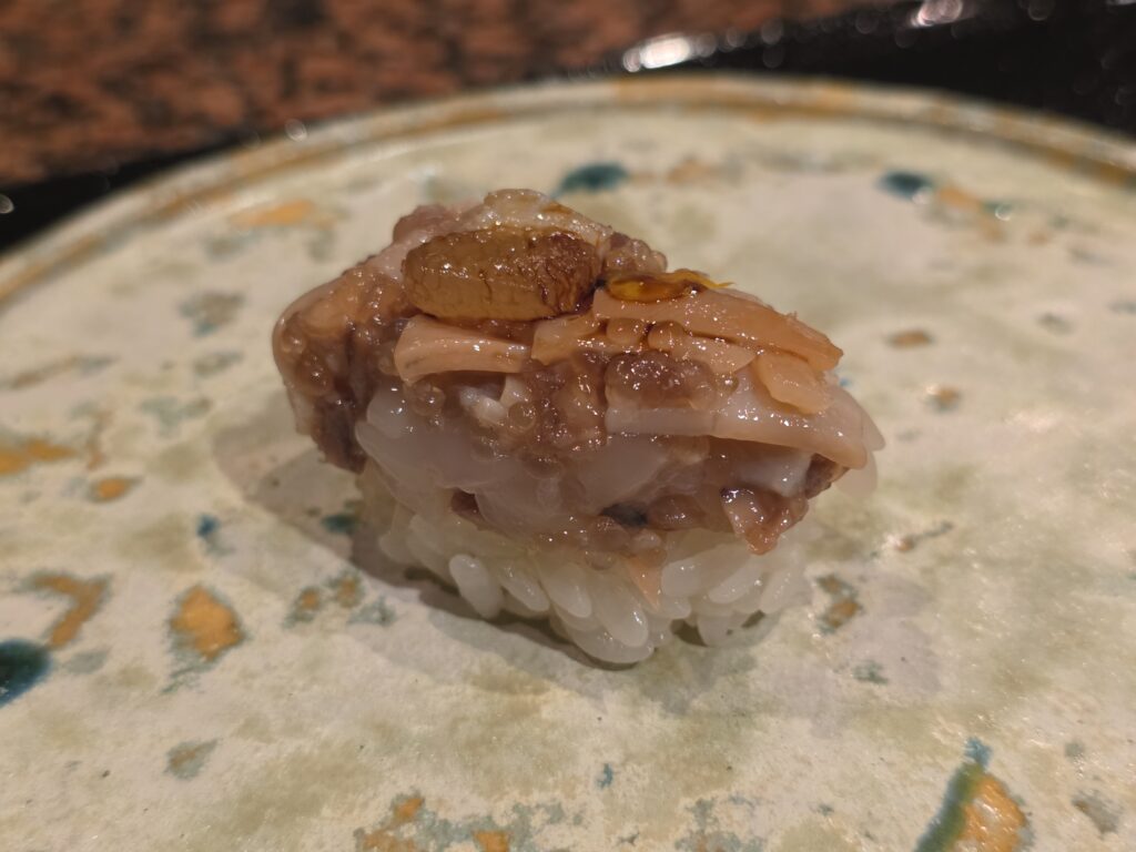 子持ちヤリイカや海苔で包まれた赤身。強すぎるほどの海苔の風味。