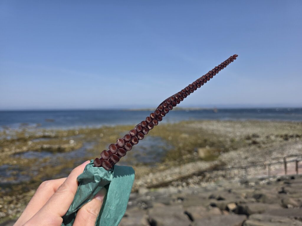 相変わらずの強風、そこらで売っているタコを干したやつをかじりながら、