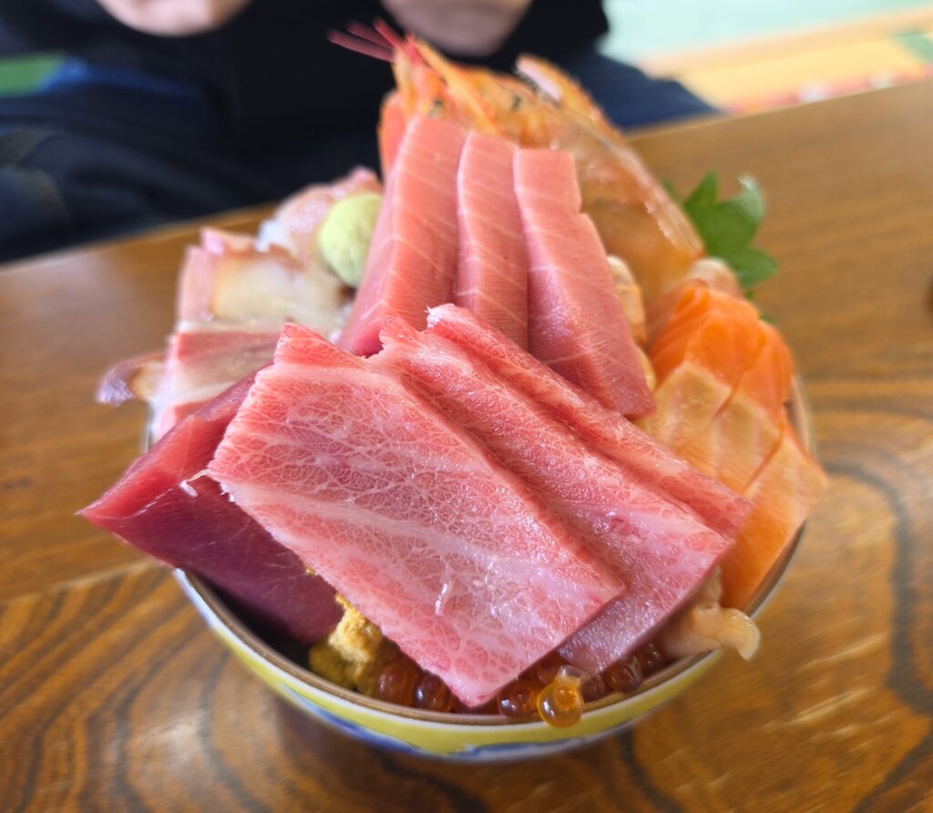 友人はウニが食いたいとのことで海峡日替わり丼にしてたけど、これまたマグロもたっぷりの贅沢どんぶりでした。